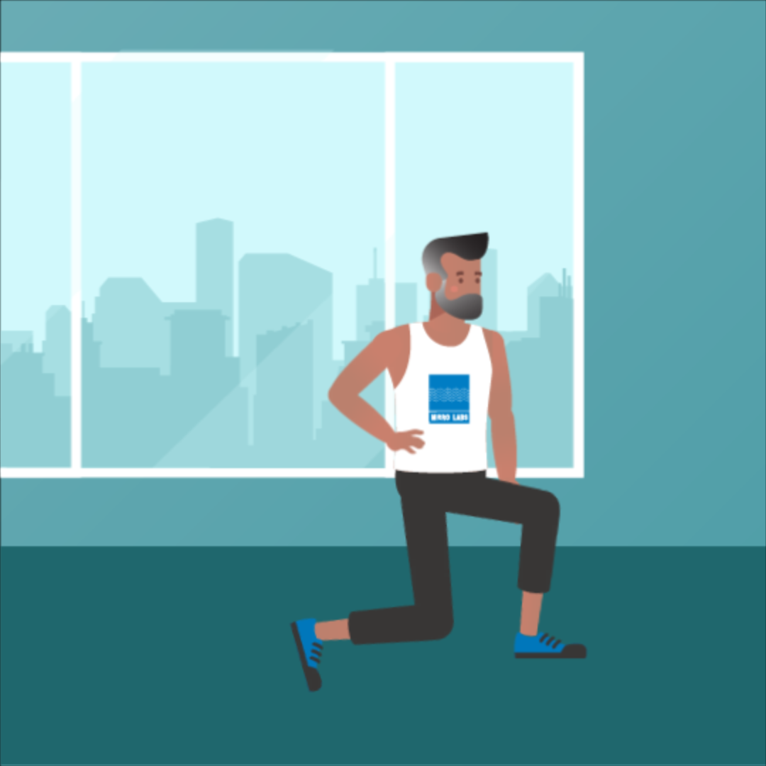 Machen Sie mit dem linken Bein einen großen Schritt nach vorne und beugen Sie das rechte Knie in Richtung Boden. Mit dem rechten Bein stehen sie nur noch auf den Zehenspitzen. Drücken Sie sich danach wieder nach oben in die Ausgangsposition. Wiederholen Sie die Bewegung mit dem anderen Bein.