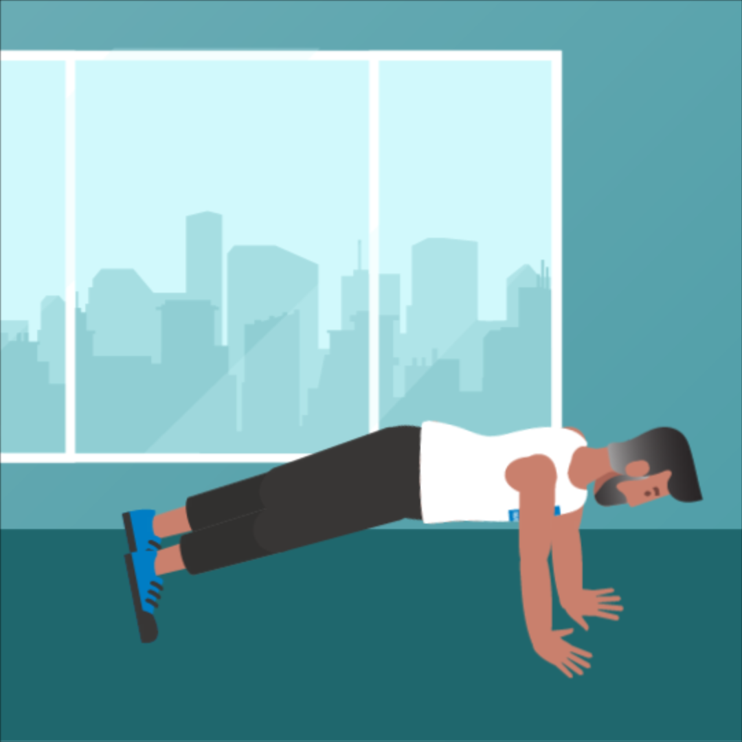 Gehen Sie in die Vierfüßler-Position. Strecken Sie beide Beine nach hinten und stellen sich auf die Zehenspitzen. Der Körper muss eine gerade Linie bilden.