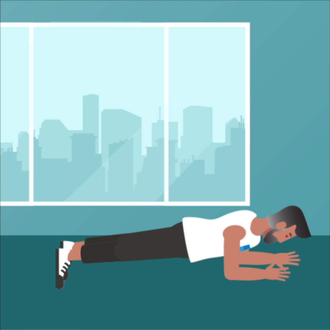 Stützen Sie Ihre Unterarme auf dem Boden ab. Strecken Sie Ihre Beine aus und stellen Sie sich auf Ihren Zehenspitzen ab. Spannen Sie Ihren Körper an.